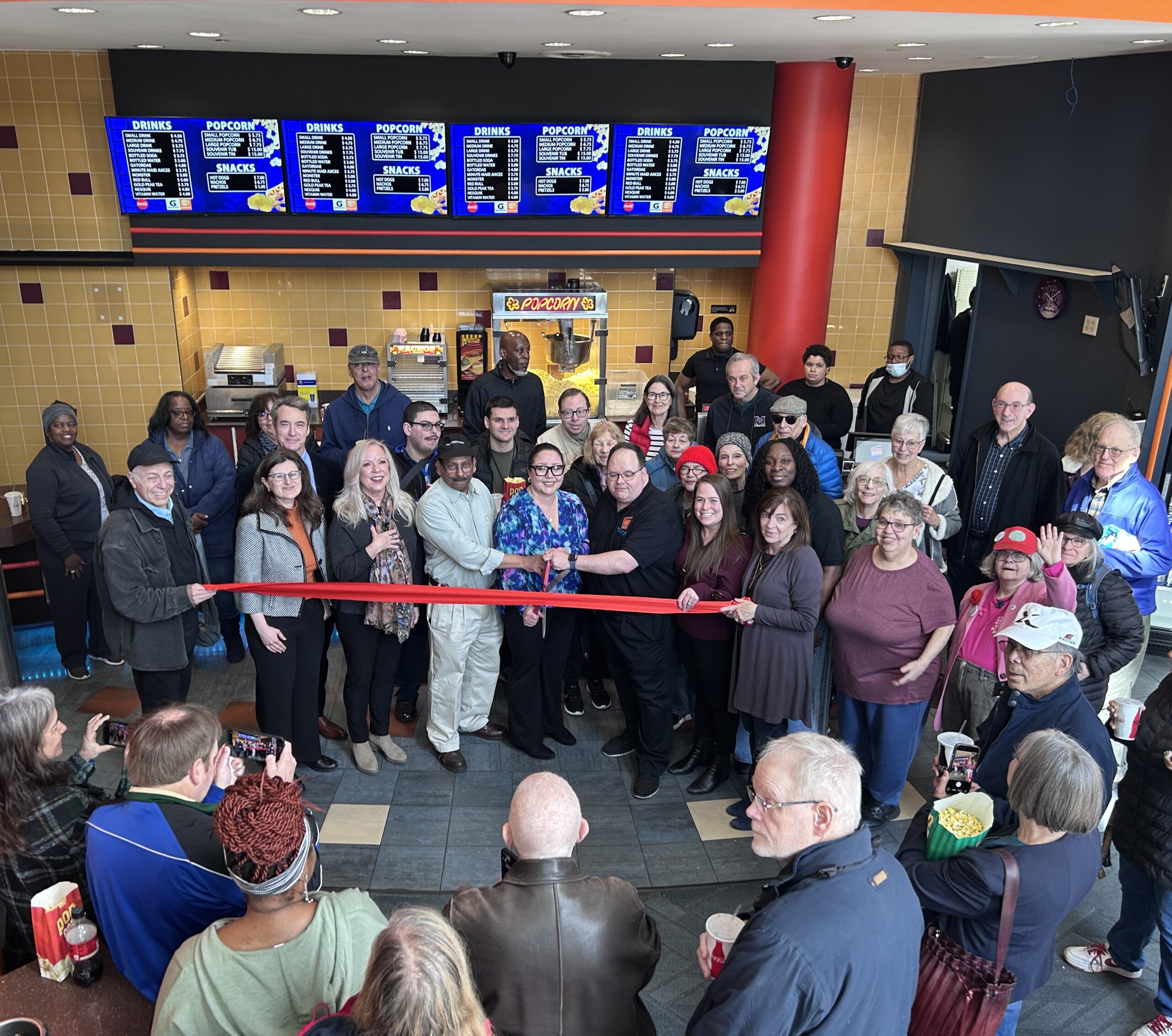 SOPAC, however, chose to open slightly earlier – on March 25 – holding a celebratory ribbon cutting in front of the new concession stand, with the South Orange Mayor Sheena Collum, members of the Village Council and SOPAC leadership in attendance along with a large crowd of excited moviegoers, including some from the Maplewood Film Society, who were eager to have a local theater again.