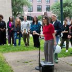 Village Council members carried a photo of retired Council member Karen Hartshorn Hilton who was an instrumental champion of the project on the Village Council, but who could not attend the groundbreaking.