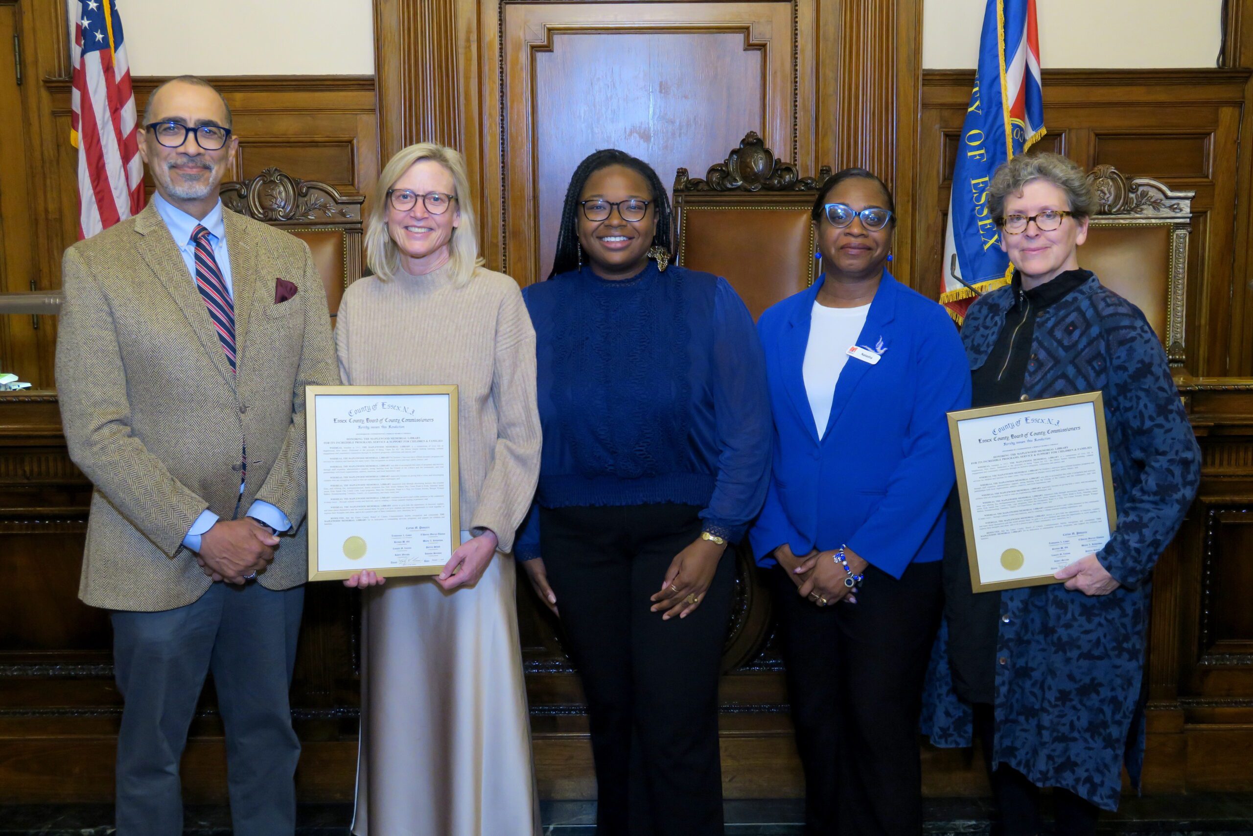 Robert A. Marchman, president of the Maplewood Memorial Library Board of Trustees and Sarah Lester, director of the Maplewood Memorial Library (left and second on the left) were honored by County Commissioner A’Dorian Murray-Thomas on Wednesday, Nov. 5 at the Newark Hall of Records.