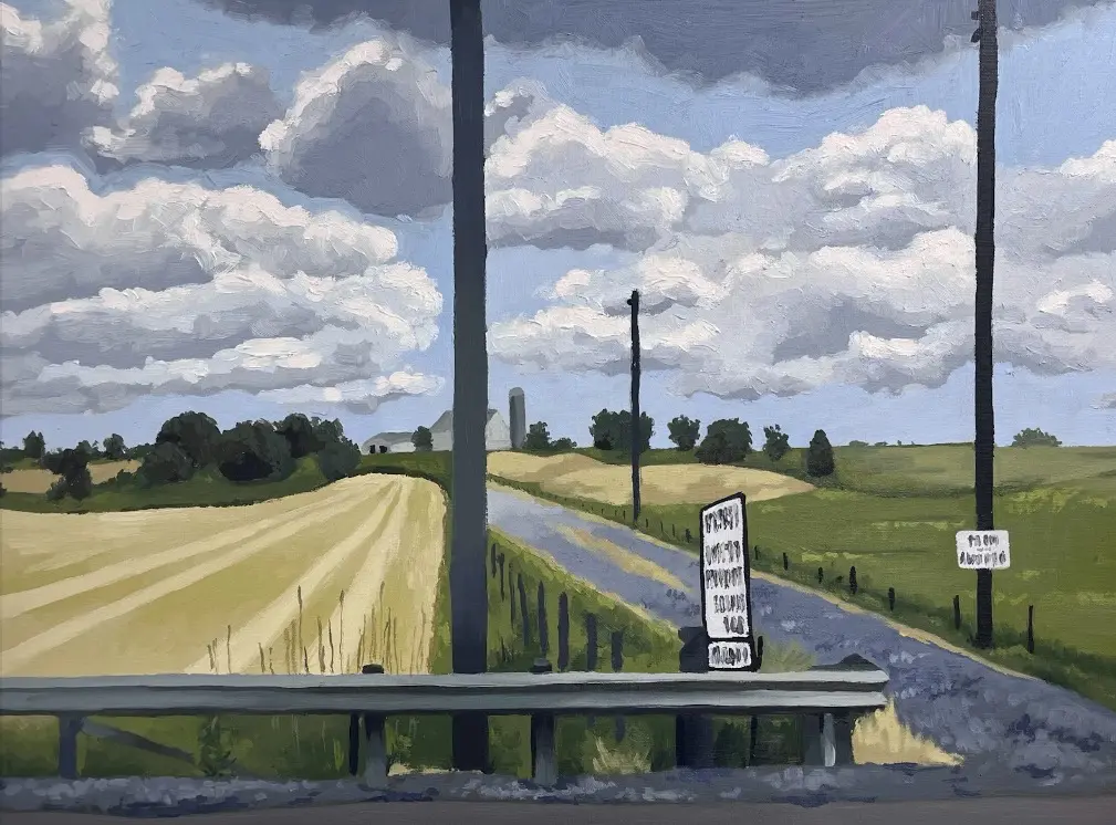 Alice Schabacker’s oil painting titled, “Property Sold at 1:00.”