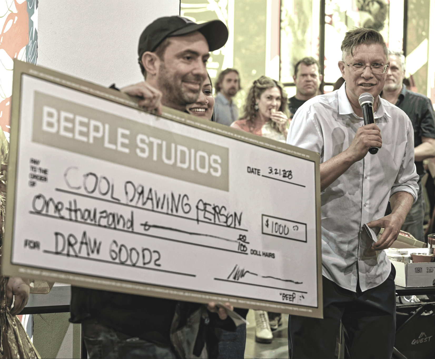 “I was announced the winner and was handed my first-ever giant novelty check, made out to ‘COOL DRAWING PERSON,’” he added.