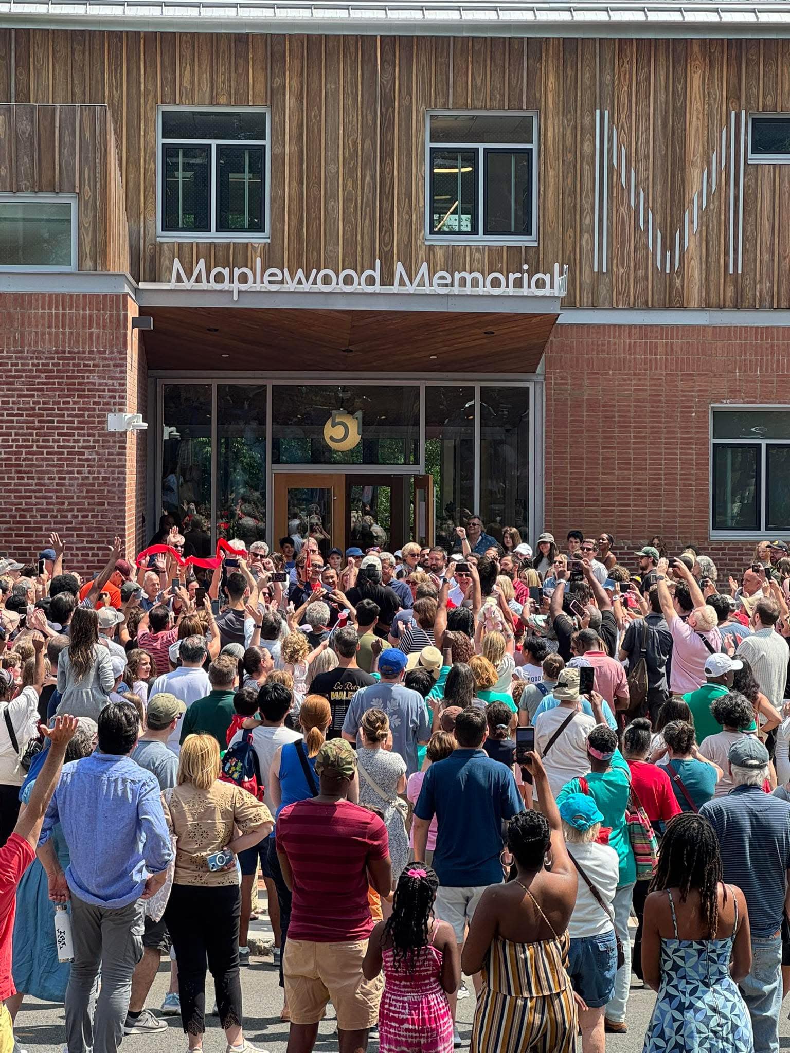 “Good morning, library lovers!” Said Library Director Sarah Lester to a large crowd on Baker Street shortly before the ribbon cutting on July 5, 2025. “Thank you, Maplewood. Thank you for being a town full of readers. This is your library!”