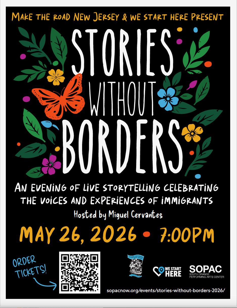 Modeled after “Listen to Your Mother” and “The Moth,” Stories Without Borders brings community members to the stage to share personal narratives of resilience, belonging, and hope — all centered on the immigrant experience. All proceeds from the event will benefit Make the Road New Jersey, a nonprofit organization dedicated to immigrant advocacy and legal aid.