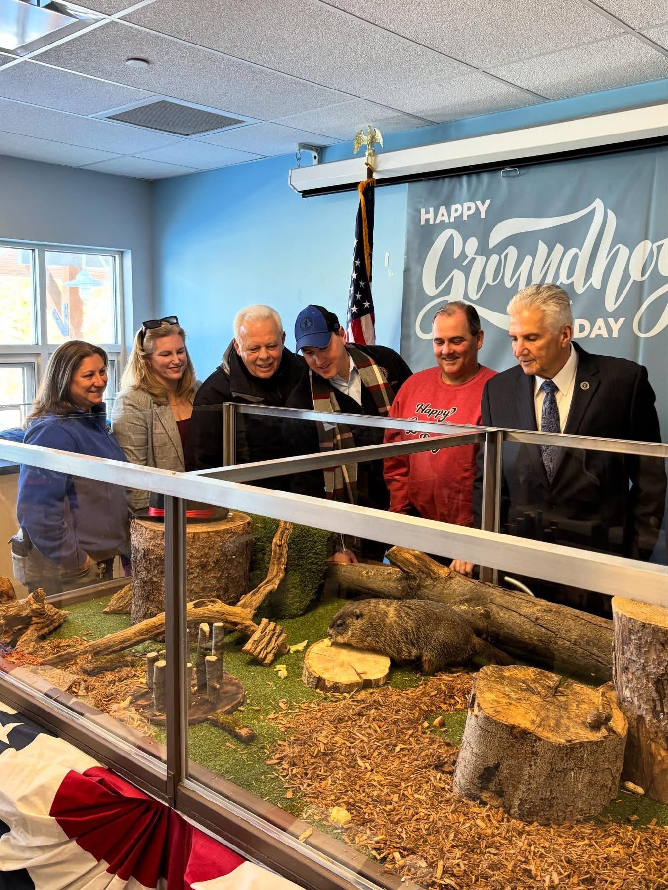 West Orange, NJ – Essex County Executive Joseph N. DiVincenzo, Jr. announced that Lady Edwina of Essex, Essex County Turtle Back Zoo’s resident groundhog, saw her shadow on Groundhog Day and is predicting winter weather to linger. She also predicted the Seattle Seahawks would defeat the New England Patriots in Super Bowl LX.