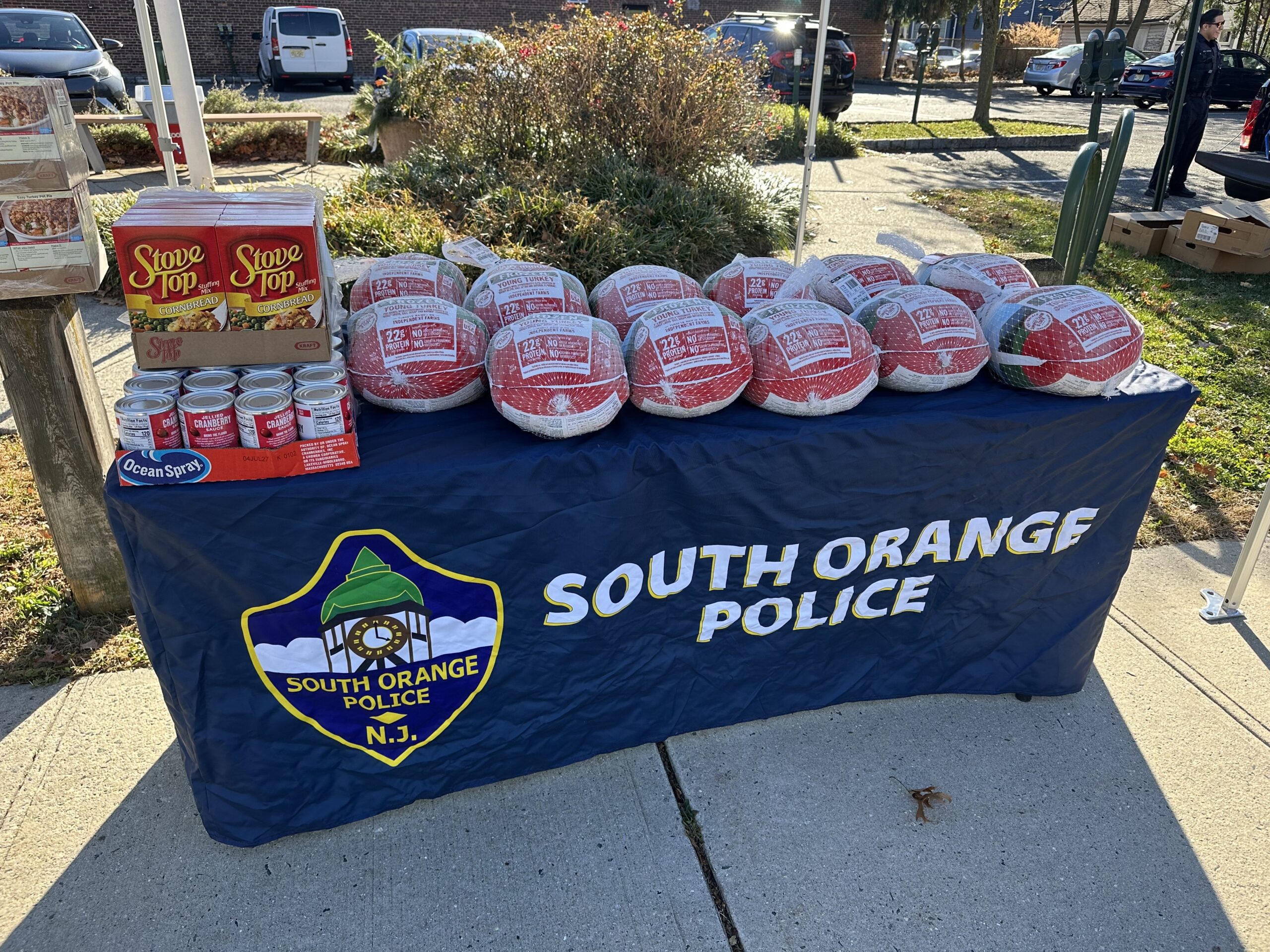 Council Member Olivia Lewis-Chang highlighted the South Orange Police Department PBA Local 12’s 2025 Thanksgiving turkey distribution on Monday in the pocket park on the corner of Irvington and West Fairview Avenues, where they gave away nearly 100 turkeys within an hour.