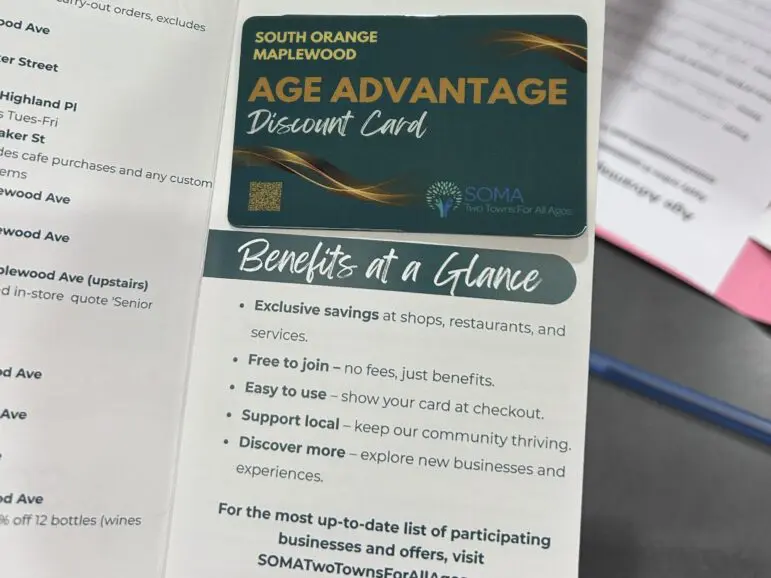 The complimentary Age Advantage discount card, sponsored by SOMA Two Towns for All Ages, is a partnership between South Orange Downtown, Seton Village, Maplewood Village Alliance and the Springfield Avenue Partnership.