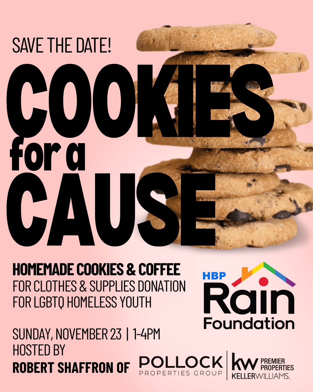 Pollock Properties Group greets November with preparation and purpose. This month, we’re bringing you our sweetest event of the season, Cookies for a Cause, a benefit for the RAIN Foundation supporting homeless LGBTQ youth, our H.E.L.P. program to set you up for Spring success, and a Fall Market Update to keep you in the know. Pour a cup of cocoa, cozy up, and join us in celebrating community, compassion, and new opportunities this November!