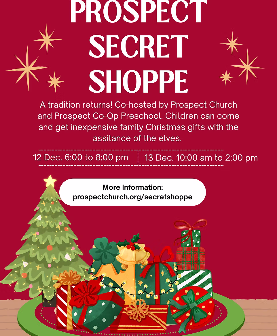Prospect Presbyterian is also bringing back Secret Shoppe, a beloved tradition where children can shop independently for affordable gifts for their loved ones. With help from volunteer “elves” – middle- and high-schoolers from the community – children will choose and purchase gifts, which will be wrapped and labeled for them to take home and place under the tree.