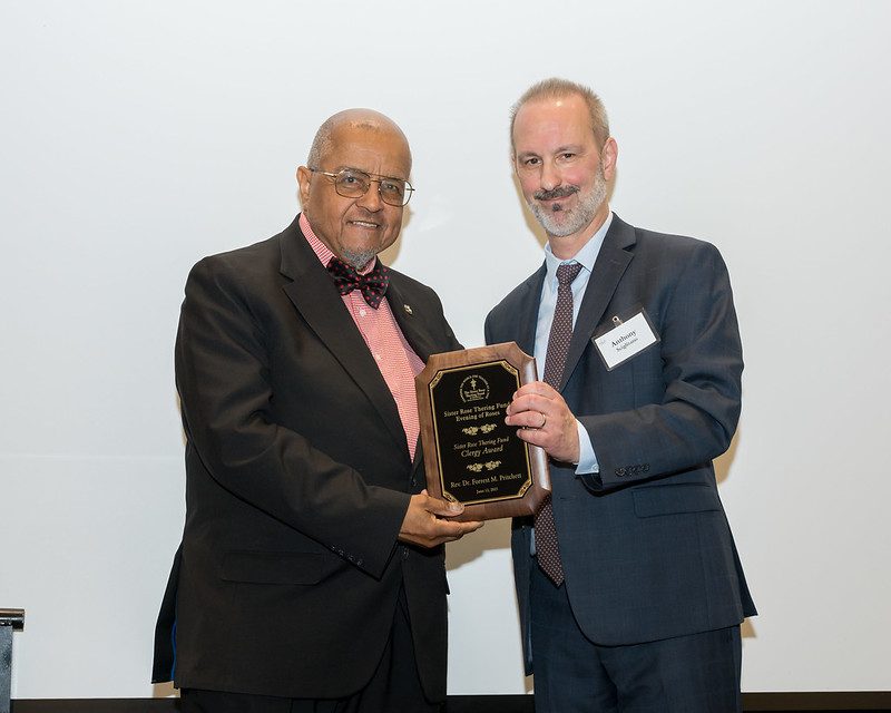 Rev. Dr. Forrest Pritchett receiving 2025 SRTF Clergy Award from Anthony C. Sciglitano, Jr., Exec. Dir., SRTF.
