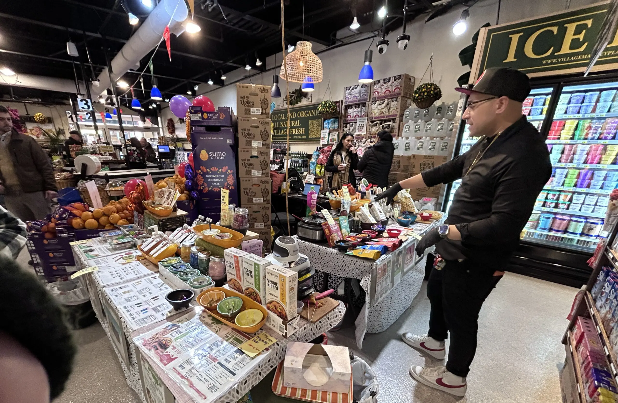 At the store on Tuesday, Village Marketplace brought in some of its vendors and gave out free samples of cheese, meat, vegetarian options, snacks and beverages.