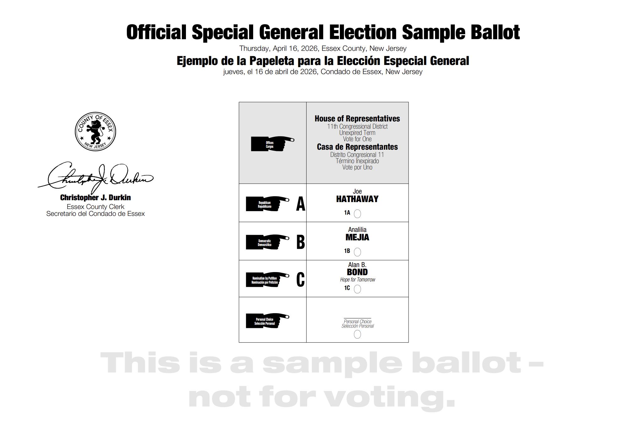 Early in-person voting for the Special Election for the NJ-11 Congressional District, featuring Democrat Analilia Mejia, Republican Joe Hathaway, and Independent Alan Bond, will run from April 6 – April 14.