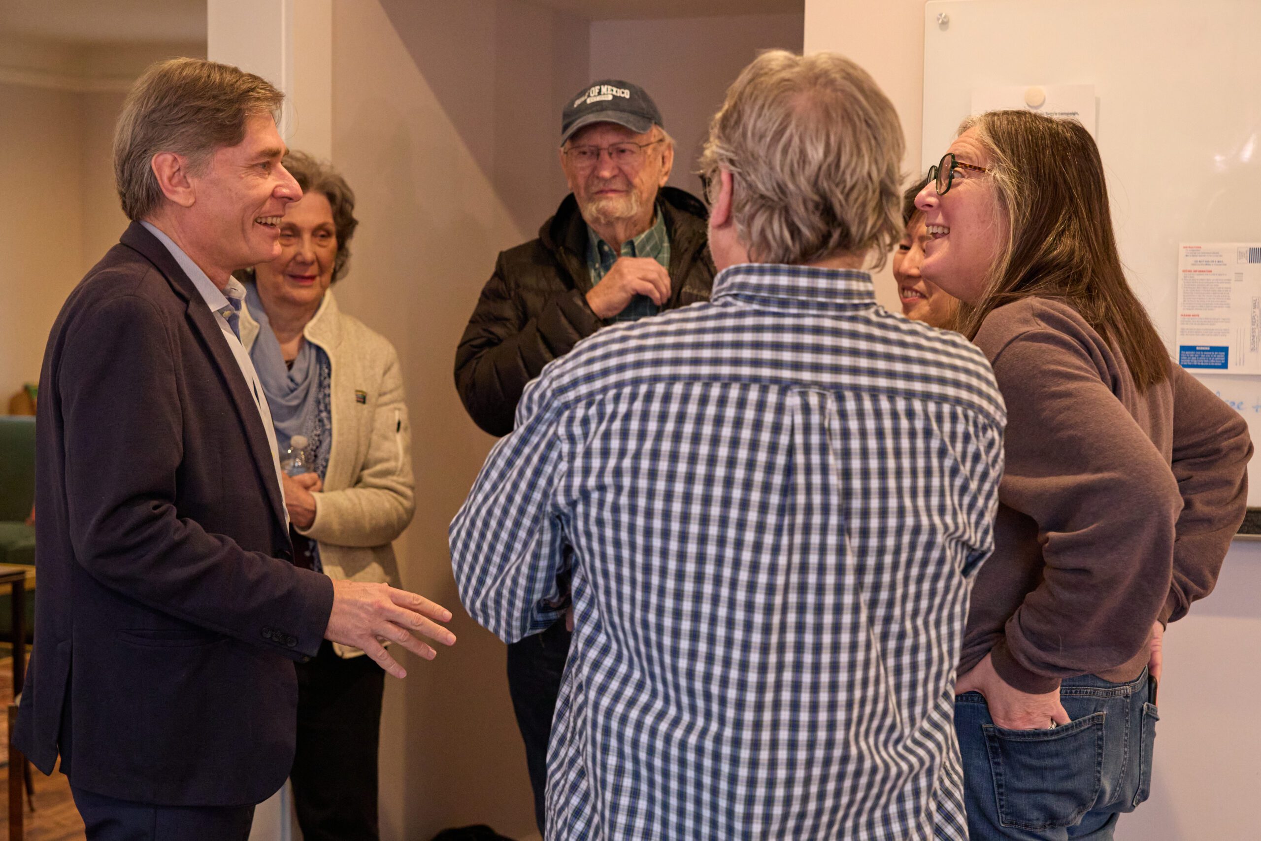 “I’m excited about Tom’s candidacy for this particular Congressional district, because I grew up in a governmental oligarchy in the Soviet Union,” said Badridze to her neighbors who had gathered in her living room to meet Malinowski on December 13. Badridze emigrated from the former Soviet state of Georgia when she was 25, “so my adulthood formed in this country. And my first time voting for real was in 2016. That was a shock to the system. Nine years later I find myself living from oligarchy to bro-ligarchy.”