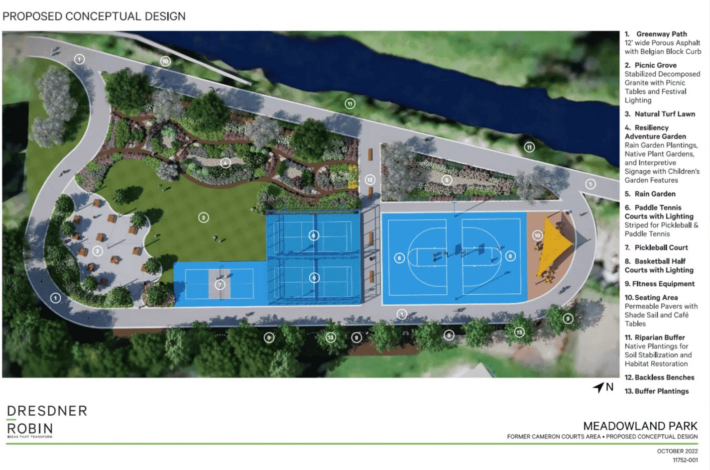 The recreation renovation project, funded in part by a $1 million Green Acres grant, will include paddle tennis and pickleball courts, basketball half courts, a rain garden, a children’s garden, fitness stations, picnic areas and a natural grass lawn.