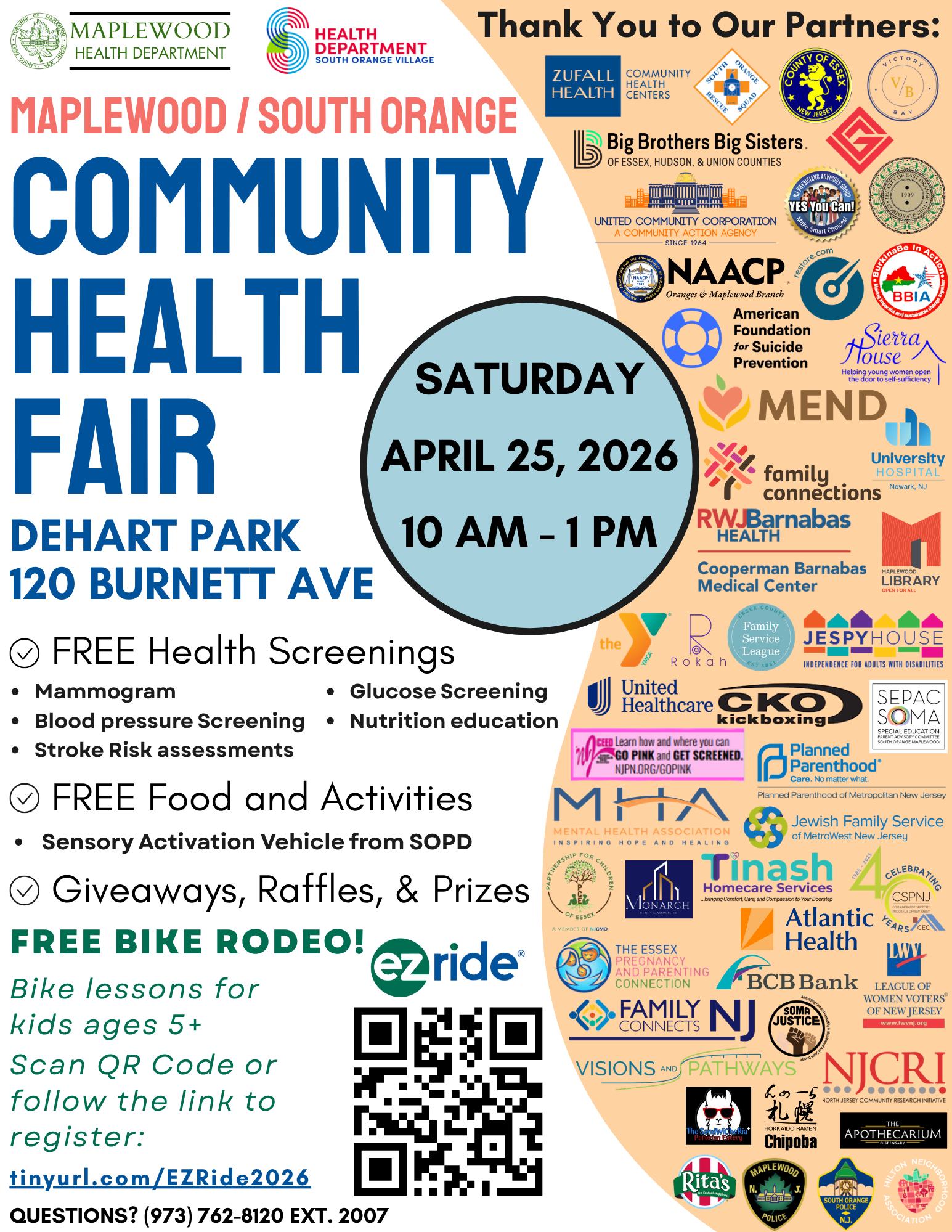 Come one, come all! Maplewood Health Department will be hosting their annual Health Fair on Saturday, April 25, from 10 am – 1 pm in DeHart Park.