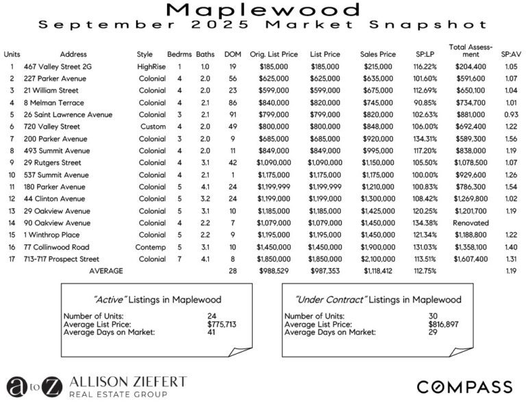 The Allison Ziefert Real Estate Group is a top producing real estate team based at Compass in Short Hills, New Jersey. We are local market experts, specializing in real estate and homes in Maplewood, South Orange, Millburn/Short Hills, Montclair/Glen Ridge, West Orange, Morristown and the surrounding New Jersey towns. We’ve also got you covered coast to coast with the best connections to top agents around the country in any market you are exploring. We are driven by earning great testimonials and referral business from happy clients.