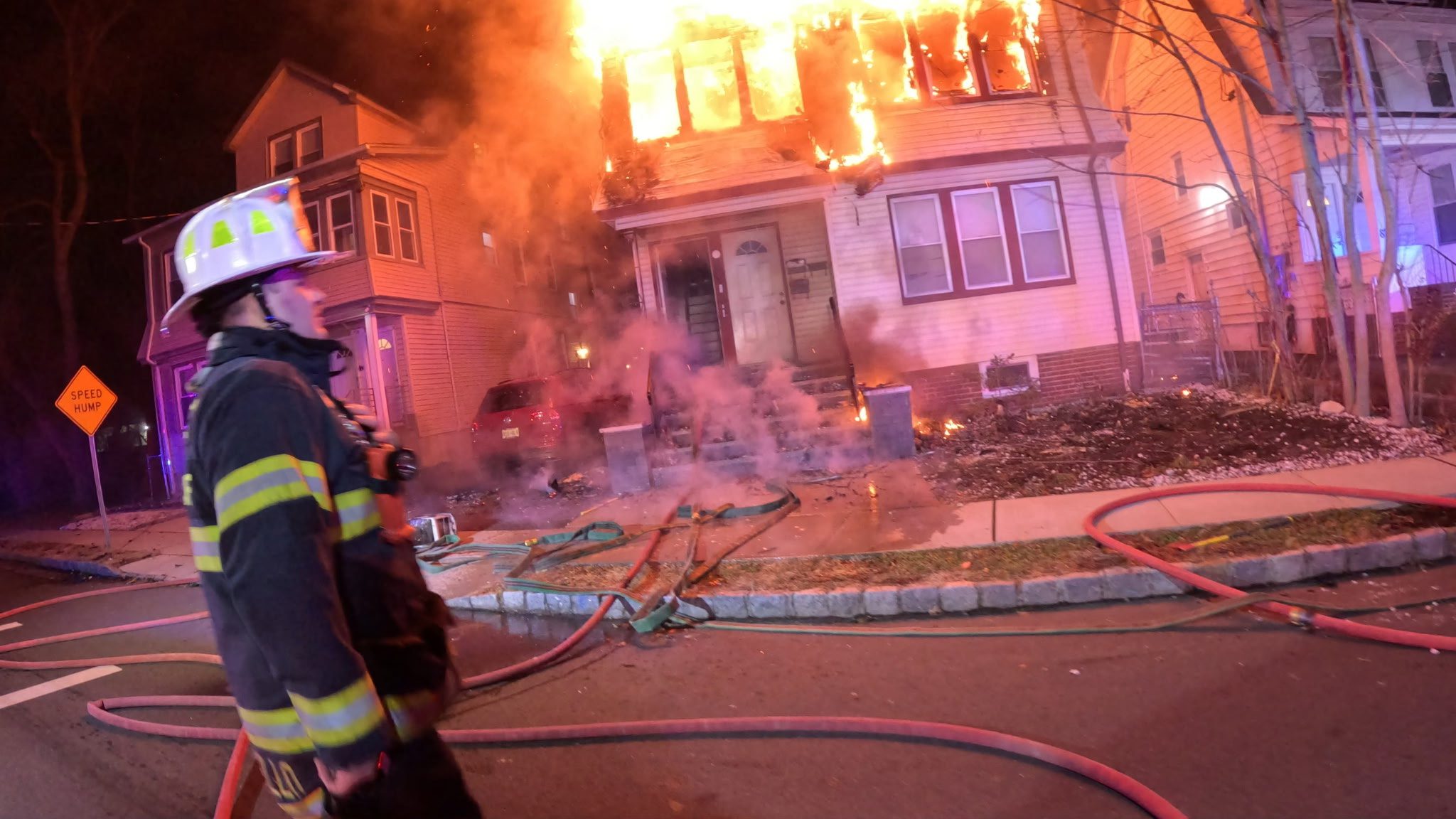 Squad 32 arrived on scene at 22:17 and confirmed a working fire in a multi-family residence with heavy fire conditions on the second and third floors. A signal 11 and simultaneous 2nd alarm were transmitted bringing in mutual aid directly to the fire scene. Faced with advanced fire conditions threatening multiple exposure buildings, companies were able to rapidly stretch multiple interior handlines and exposure protection lines to extinguish the fire and prevent it from spreading to neighboring residences.