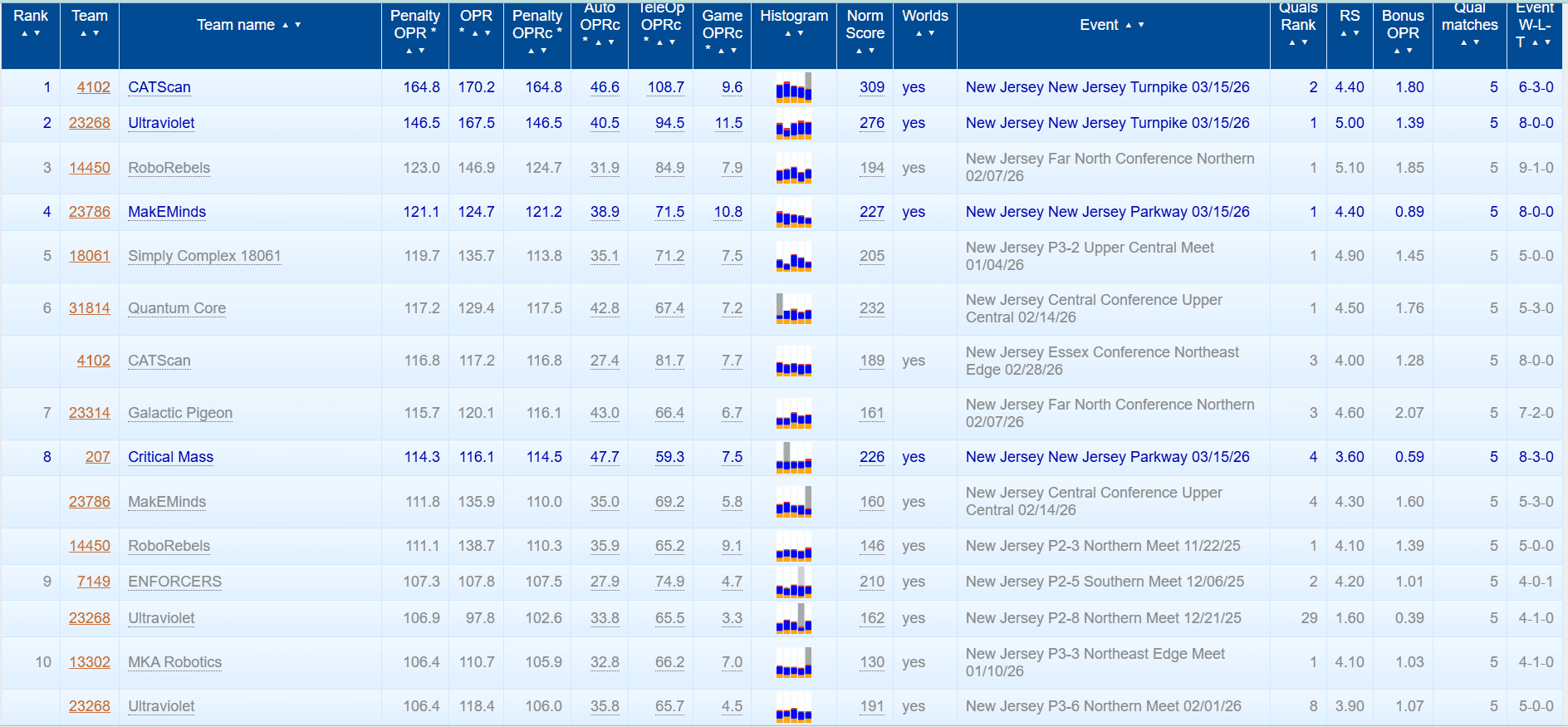 The team finished as a Division Finalist, earning an invitation to compete at the world championships alongside nearly 9,000 teams from around the globe. Their performance across the season placed them first in New Jersey in average individual scoring, 12th in the United States, and 29th worldwide. They also ranked 40th globally in autonomous scoring and 45th in tele-operated scoring, while setting a New Jersey state match point record with 324 points.
