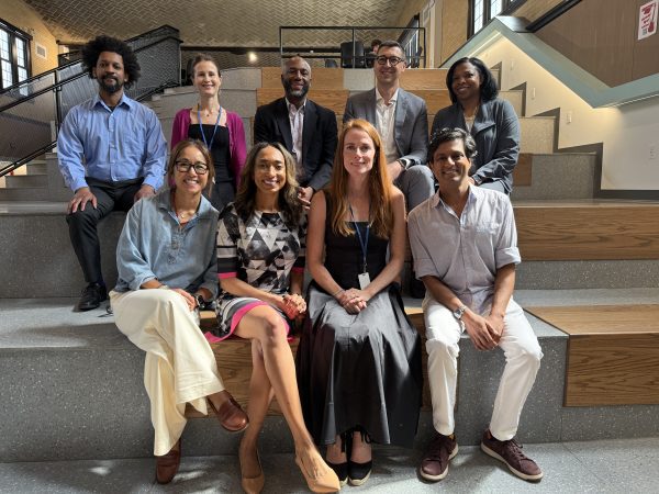 Current and former BOE members gathered for the event. Back row: Dr. Qawi Telesford, Deirdre Brown, Thair Joshua, Will Meyer, Shayna Sackett-Gable. Front row, Regina Eckert, Nubia DuVall Wilson, Kaitlin Wittleder, Bimal Kapadia.
