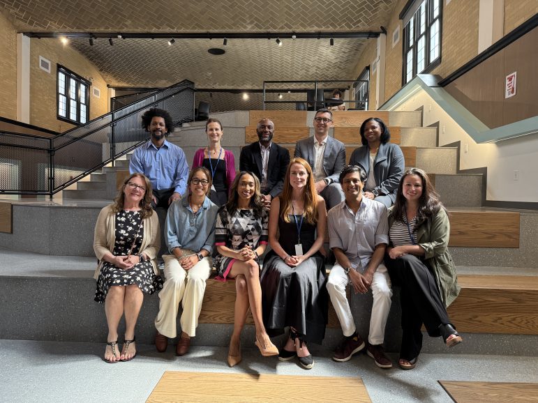 Current and former BOE members gathered for the event. Back row: Dr. Qawi Telesford, Deirdre Brown, Thair Joshua, Will Meyer, Shayna Sackett-Gable. Front row, Regina Eckert, Nubia DuVall Wilson, Kaitlin Wittleder, Bimal Kapadia.