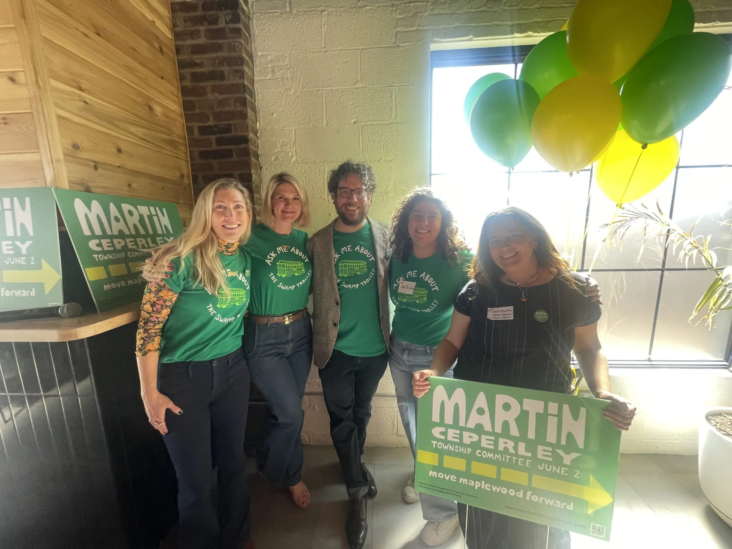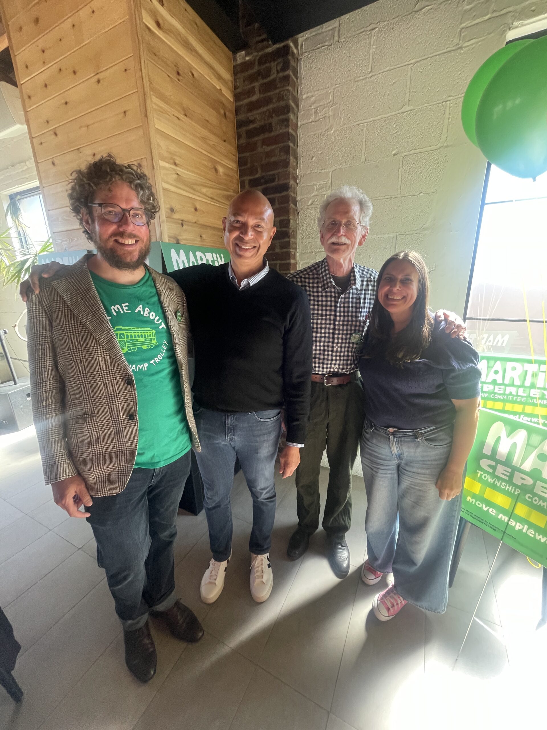 Three candidates are vying for two seats on the Maplewood Township Committee in the Democratic primary on June 2: Current Mayor Vic De Luca, Planning Board and Hilton Neighborhood Association member John T. Sullivan, and Green Team member and “Bike Bus” dad Martin Ceperley. (No Republicans have filed to run.) Village Green will be covering all three candidates’ kickoff events. De Luca will host one in May (TBD), John Sullivan is hosting an event on April 22 at 7 p.m. at Pallet Brewing Company, 30 Newark Way, and Ceperley hosted an event on April 12 at Artie’s on Newark Way. Below are Ceperley’s comments from his campaign kickoff event: