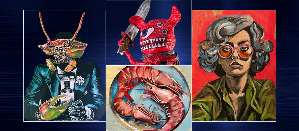 Weiss, a painter and illustrator, presents dynamic compositions that blur the line between gesture and form. His self-defined series Beast Mode, Practical Effects, and Limbic move between surreal figuration and abstraction, exploring the emotional edge where memory, rhythm, and intuition collide. His layered surfaces and hand-carved details pull viewers into a visual language of energy, movement, and introspection. Influenced by film, literature, and speculative fiction, Weiss uses humor and pop sensibility to reflect the tension between chaos and clarity in contemporary life. “Reality is neck and neck with speculative fiction,” he observes, “and decency is being squeezed out on the rail.”
