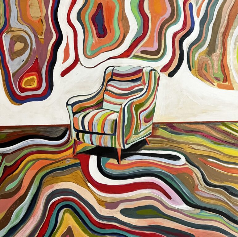 Weiss, a painter and illustrator, presents dynamic compositions that blur the line between gesture and form. His self-defined series Beast Mode, Practical Effects, and Limbic move between surreal figuration and abstraction, exploring the emotional edge where memory, rhythm, and intuition collide. His layered surfaces and hand-carved details pull viewers into a visual language of energy, movement, and introspection. Influenced by film, literature, and speculative fiction, Weiss uses humor and pop sensibility to reflect the tension between chaos and clarity in contemporary life. “Reality is neck and neck with speculative fiction,” he observes, “and decency is being squeezed out on the rail.”