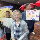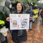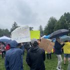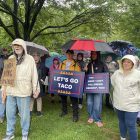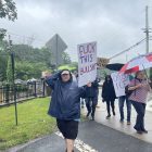 But as the march took off and the rain came down, the numbers continued to grow. By the time the front of the march had made it to Spiotta Park, protesters were still streaming from Flood’s Hill as local residents continued to join in.