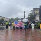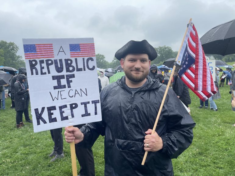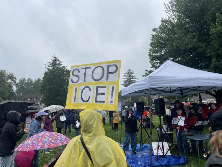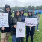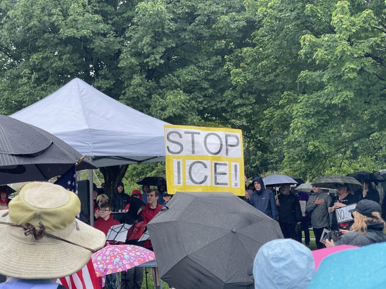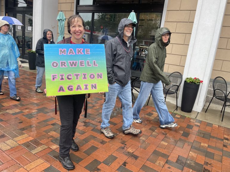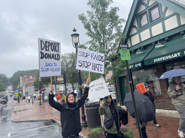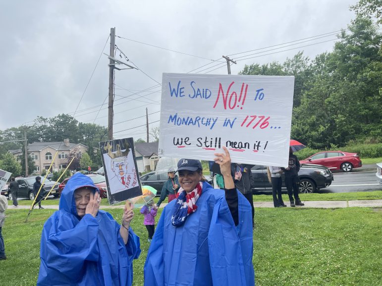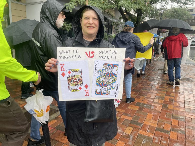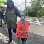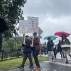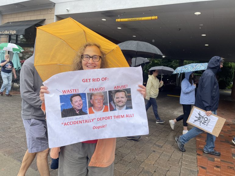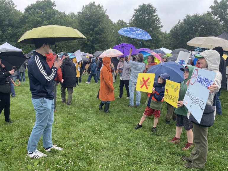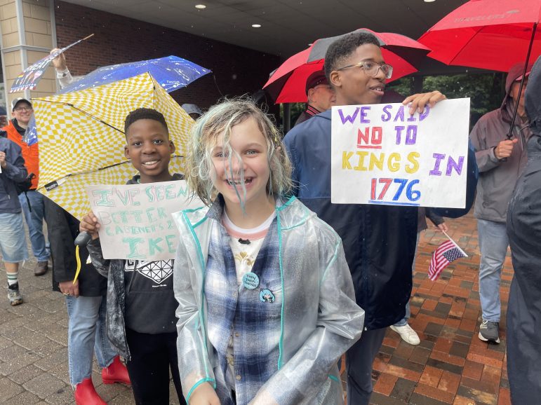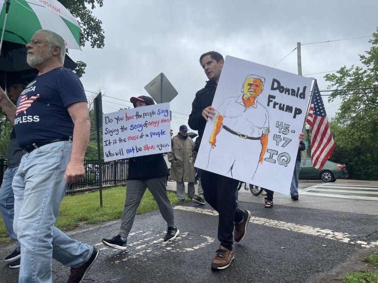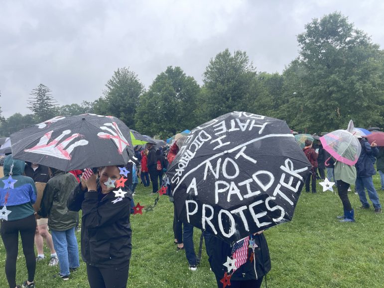 Hundreds gathered in the rain at Flood’s Hill in South Orange to march through Cameron Field and up South Orange Avenue on Saturday, June 14, for the “No Kings” protest against authoritarianism.