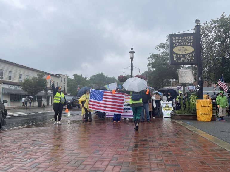 A loud bang sounded out as the march passed under the train trestle at Sloan Street. But the noise didn’t emanate from the protests and didn’t rattle the protesters. Village officials said that the location of the noise – potentially a firecracker – came from the west, possibly near South Orange Middle School.