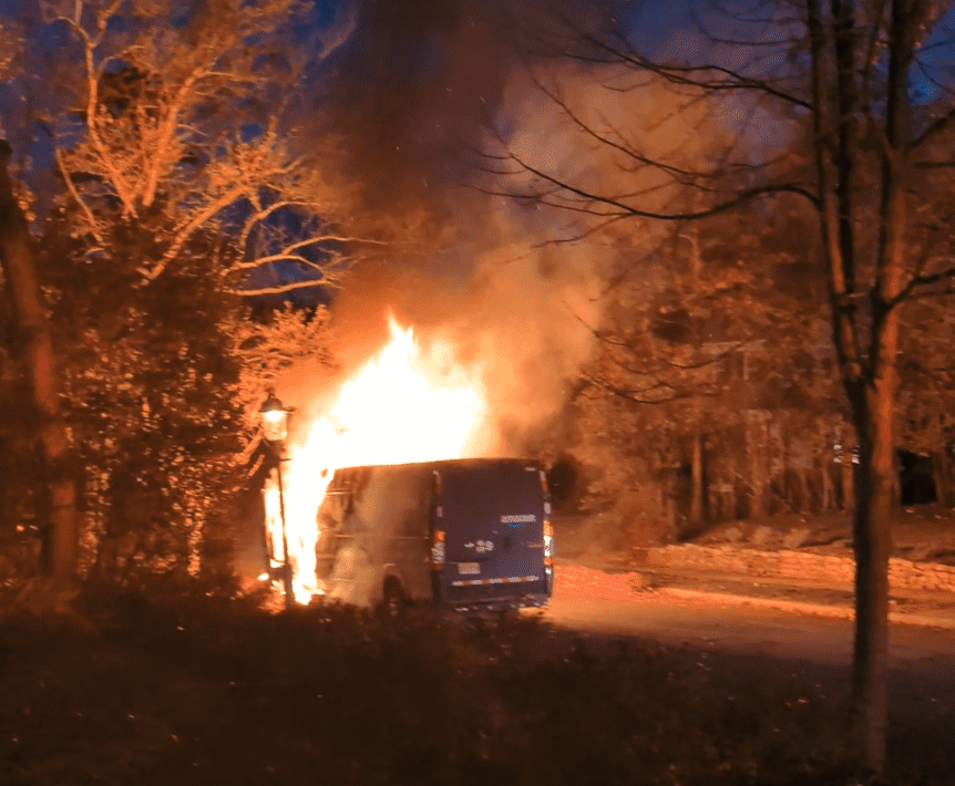 South Essex Fire Department Engine 83 arrived within four minutes of being dispatched to find the van “heavily involved in flames and, “within 90 seconds of arriving on scene, Engine 83 was flowing water and knocking down the fire,” reported Captain William Davitt, the department’s public information officer.